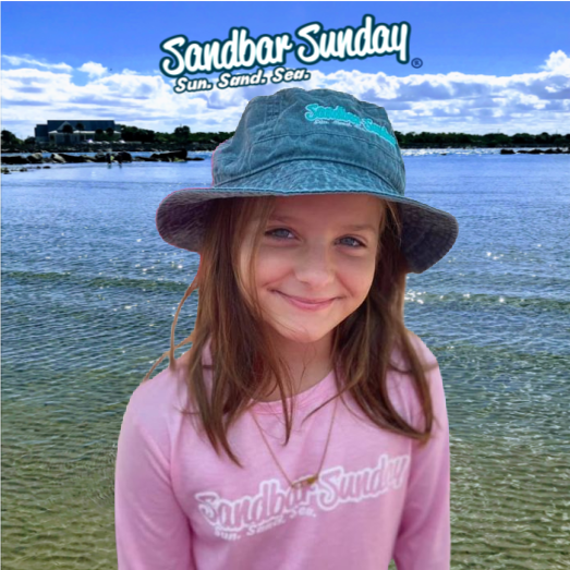 Add some shade to your sandbar Sunday with this stylish bucket hat with embroidered Sandbar Sunday logo in aqua or pink.